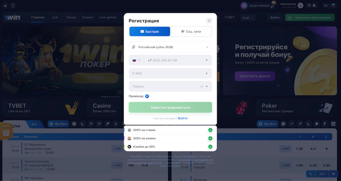 Зарегистрироваться на официальном сайте 1win могут все игроки в режиме реального времени. Для этого достаточно зайти на официальный сайт, заполнить краткую анкету и дождаться подтверждения по смс или email.